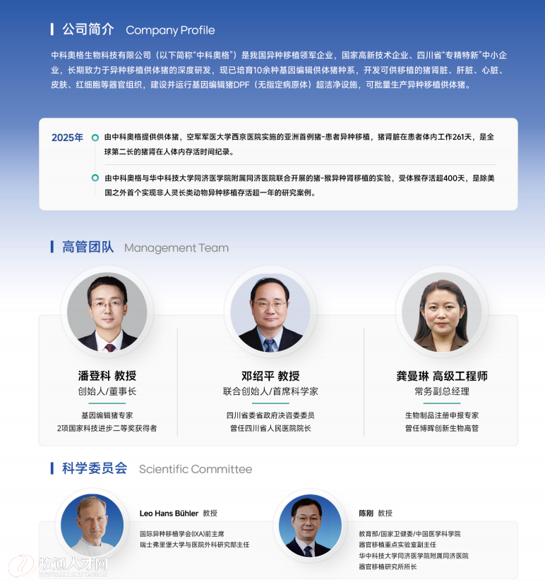 中科奧格生物科技有限公司(以下簡稱“中科奧格”)是我國異種移植領(lǐng)軍企業(yè),由國家級人才團(tuán)隊(duì)潘登科教授和鄧紹平教授創(chuàng)立。中科奧格長期致力于異種移植供體豬的深度研發(fā),培育國內(nèi)最大的基因編輯低免疫原性供體豬種群,開發(fā)可供移植的豬腎臟、肝臟、心臟、皮膚、紅細(xì)胞等器官、組織和細(xì)胞治療技術(shù),實(shí)現(xiàn)從基因編輯豬到臨床應(yīng)用的全產(chǎn)業(yè)鏈技術(shù)突破。