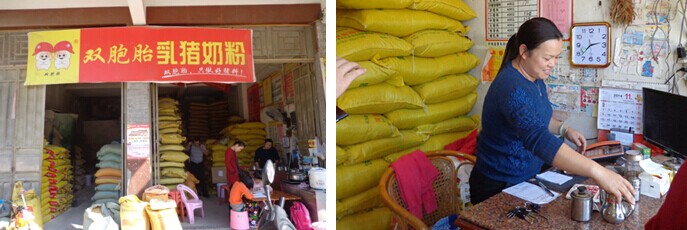 在廣東省紫金縣城黃花路口,有一爿雙胞胎飼料經(jīng)銷店鋪,老板叫賴紹強(qiáng),做雙胞胎飼料已十一年,與雙胞胎誕生至今的時(shí)間相吻合。十一年,賴紹強(qiáng)的飼料店與雙胞胎共成長。雙胞胎已由一個名不見經(jīng)傳的地方小企業(yè)成長為中國企業(yè)500強(qiáng)、豬飼料全國銷量第一大企業(yè),賴紹強(qiáng)的飼料店也由最初的月銷量20、30噸,做上2013年的月銷量950多噸。近千噸的月銷量,是怎么做上去的?11月16日下午,記者驅(qū)車來到紫金縣城賴紹強(qiáng)的飼料店探秘。