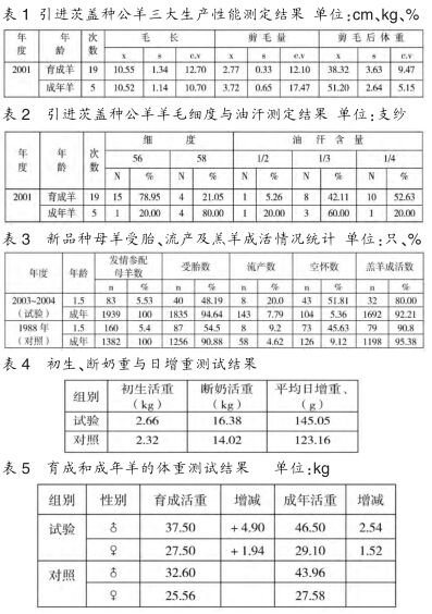 (1)導(dǎo)入后代的繁殖性能。2003~2004年在林周縣項(xiàng)目區(qū)茨蓋羊的導(dǎo)入后代成年羊1939只,受胎率為94.5%,產(chǎn)羔1835只。在同樣的飼養(yǎng)管理?xiàng)l件下,未導(dǎo)入茨蓋羊的新品種成年羊的受胎率為92.5%,提高了2.0%,導(dǎo)入效果顯著。但試驗(yàn)組的羔羊成活率略低于對(duì)照組,1.5歲的低0.8%,成年羊的低4.38%。