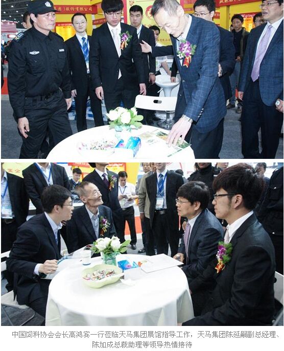 期間,農(nóng)業(yè)部原副部長、中國飼料協(xié)會會長高鴻賓,全國畜牧總站副站長、中國飼料工業(yè)協(xié)會副秘書長沙玉圣等領(lǐng)導同時親臨天馬集團展館視察指導。這已是農(nóng)業(yè)部和中國飼料工業(yè)協(xié)會領(lǐng)導第五次集體蒞臨天馬集團指導工作。天馬集團陳延嗣副總經(jīng)理、陳加成總裁助理、研發(fā)中心張蕉南總監(jiān)、采購中心吳景紅總監(jiān)、生產(chǎn)管理中心陳金忠副總監(jiān)等領(lǐng)導熱情接待了高會長一行,并向他們簡要匯報了天馬集團概況和中長期戰(zhàn)略發(fā)展規(guī)劃。