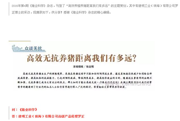 問:請(qǐng)分享下建明在全球的減抗養(yǎng)豬方面的發(fā)展與經(jīng)驗(yàn)。