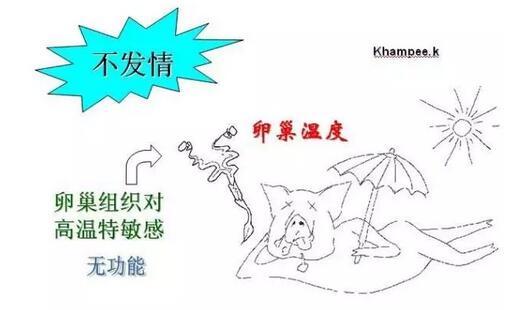 ② 高溫條件下,哺乳母豬采食量不足,導(dǎo)致哺乳期掉膘嚴(yán)重,母豬營養(yǎng)不足,最終造成卵巢機(jī)能下降,因此不容易發(fā)情。