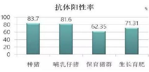 這些抗體是疫苗免疫產(chǎn)生還是有野毒感染刺激產(chǎn)生,該檢測技術沒有進行區(qū)分。總體來看,商品豬群豬瘟抗體陽性率并不高。