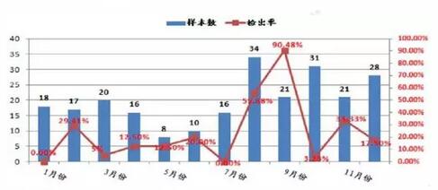 圖12015年1-12月份抗原檢測(cè)結(jié)果