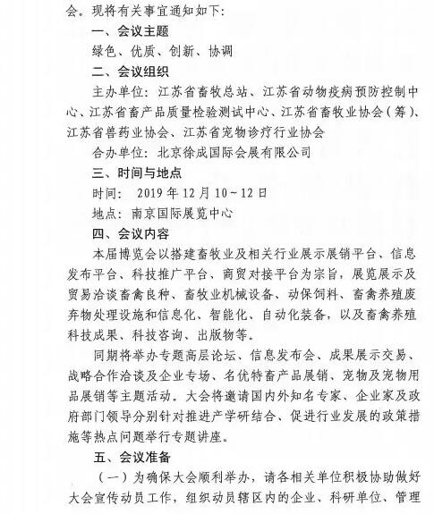 1、大會名稱:2019華東地區(qū)畜牧業(yè)博覽會暨2019第四屆江蘇畜牧業(yè)博覽會