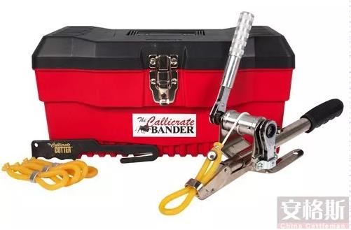 安格斯雜交公犢牛被分成三組,每組36頭。各組分別在在1周(4月初),2個月(5月下旬)和4個月(8月初)閹割。在每個年齡組中,12頭是用手術(shù)刀閹割的,12頭是束縛帶閹割的,12頭沒有被閹割(對照),在其他方面均保持一致。第一組為1周齡組,徒手處理,第二組為2個月組,使用工作臺,第三組為4個月組,使用液壓機(不同的保定方法)在1周齡組的犢牛用手術(shù)刀閹割,而Newberry刀(圖1)用于大一些的犢牛。在1周齡組和2個月組的小牛中使用橡膠束縛帶進行帶狀閹割, 4個月組的小牛中使用Callicrate 帶(圖2)。