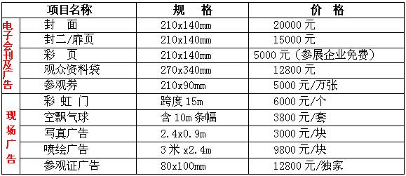 會刊及網(wǎng)絡(luò)宣傳:微信版電子會刊,免費贈予專業(yè)觀眾和參展商,4個展位以上展商將獲重點推介(包括官方微博、官方微信、官網(wǎng)LOGO鏈接、郵件推廣、短信推廣、365天供需配對服務(wù)等);