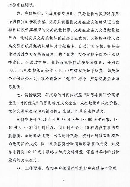 華儲網(wǎng)4月21日發(fā)布中央儲備凍豬肉投放競價交易有關(guān)事項的通知,將競價交易1萬噸,交易時間為2020年4月23日下午13時至16時,這是今年以來第16批投放的中央儲備凍豬肉,累計投放量將達31萬噸。