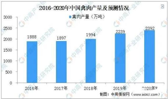 從禽肉產(chǎn)量情況來看:禽肉是我國(guó)城鄉(xiāng)居民蛋白質(zhì)消費(fèi)的主要來源。目前,禽肉已取代牛肉成為世界上第二大消費(fèi)肉類,由于禽肉價(jià)格低于其他肉類,消費(fèi)者普遍認(rèn)為禽肉是一種安全肉類,禽肉消費(fèi)快速增長(zhǎng)。據(jù)國(guó)家統(tǒng)計(jì)局?jǐn)?shù)據(jù)顯示:2019年,我國(guó)禽肉產(chǎn)量2239萬噸,增加245萬噸,增長(zhǎng)12.3%。隨著百姓肉品消費(fèi)結(jié)構(gòu)的升級(jí),禽肉消費(fèi)量還將進(jìn)一步增加。到2020年,我國(guó)禽肉產(chǎn)量或近2400萬噸。