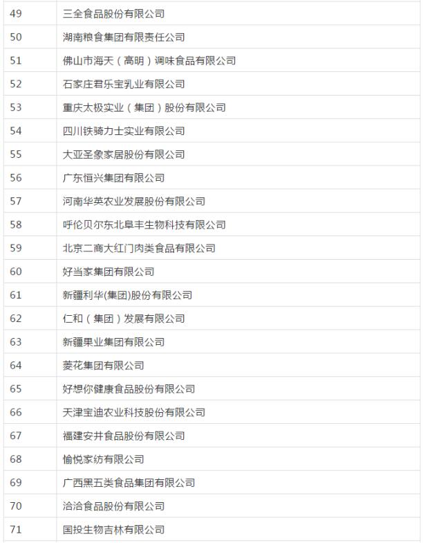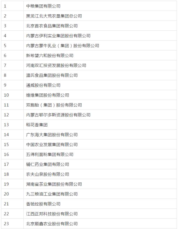 全國(guó)農(nóng)產(chǎn)品加工業(yè)100強(qiáng)企業(yè)名單