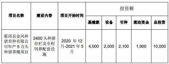 資金來源:霍邱縣金風(fēng)種豬育種有限公司自有資金及銀行貸款。