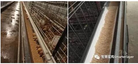有的育雛籠料位窄但比較深,籠底面積大,會出現(xiàn)雞群的密度比較適宜但雞群料位不夠的現(xiàn)象。這個時候,雞群就會出現(xiàn)搶料情況,需要分幾波進行采食,從而造成雞群體重不達標。