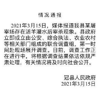 山東省冠縣官方微博3月15日發(fā)布情況通報(bào)稱,已組成聯(lián)合調(diào)查組,第一時間趕赴現(xiàn)場展開調(diào)查。