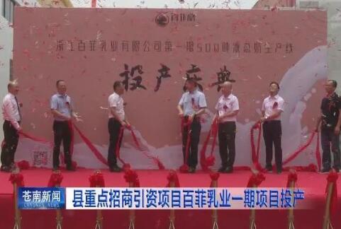 6月14日上午,選址浙江省溫州市蒼南工業(yè)園區(qū)的,縣重點(diǎn)招商引資項(xiàng)目百菲乳業(yè)公司一期,日加工500噸水牛液態(tài)奶自動(dòng)化生產(chǎn)線落地投產(chǎn),縣領(lǐng)導(dǎo)李上清、吳錫雕、施成書等到場(chǎng)祝賀。
