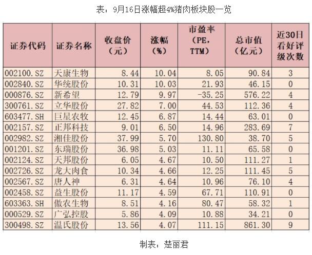 豬肉板塊大漲3.97% 7只概念股獲機(jī)構(gòu)高頻點(diǎn)贊