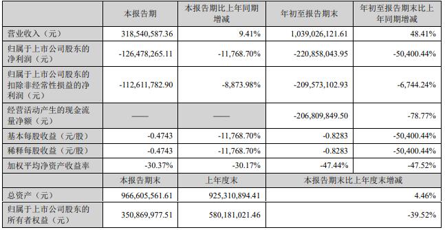 正虹科技10月26日公布2021年第三季度報(bào)告。公司第三季度實(shí)現(xiàn)營(yíng)業(yè)收入為3.19億元,同比增加9.41%;凈利虧損1.26億元,同比下降11,768.70%。前三季度共實(shí)現(xiàn)營(yíng)業(yè)收10.39億元,同比增加48.41%;凈利虧損2.21億元,同比減少50,400.44%。