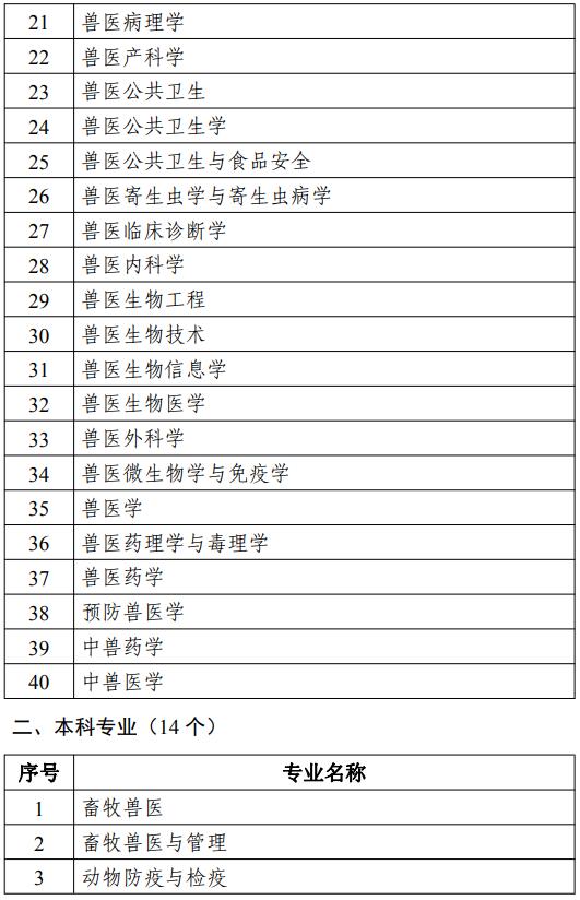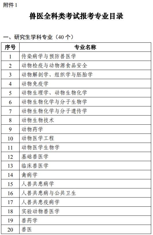 附件:1.獸醫(yī)全科類考試報(bào)考專業(yè)目錄
