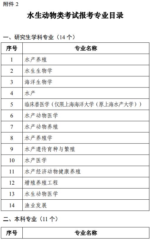 2.水生動(dòng)物類考試報(bào)考專業(yè)目錄