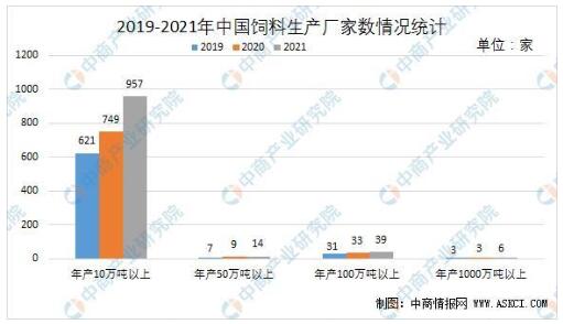 目前,我國(guó)飼料產(chǎn)業(yè)企業(yè)在不斷提高自身生產(chǎn)能力,淘汰落后產(chǎn)能。2020年,我國(guó)年產(chǎn)10萬(wàn)噸以上的飼料企業(yè)有749家,較上年大幅增長(zhǎng);9家年產(chǎn)50萬(wàn)噸以上;有33家飼料企業(yè)集團(tuán)年產(chǎn)在100萬(wàn)噸以上,3家生產(chǎn)能力超過(guò)千萬(wàn)噸。