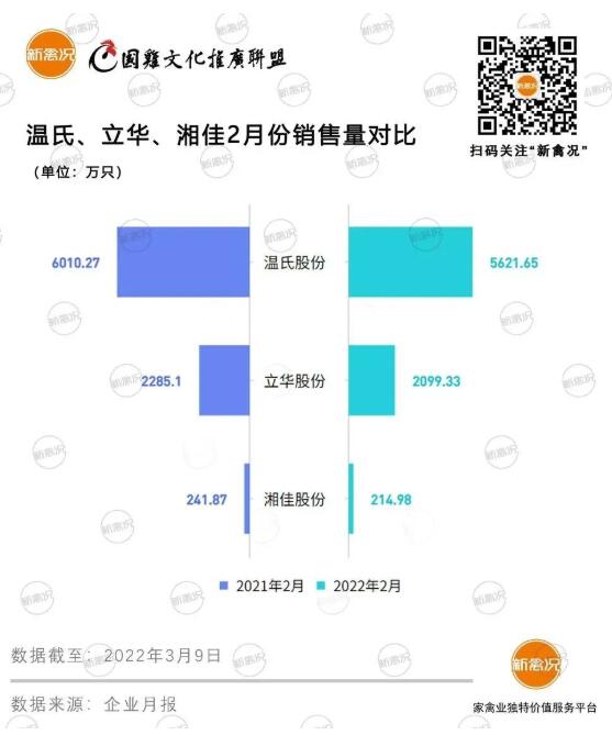 近日,國雞上市企業(yè)陸續(xù)公布2月份銷售簡報。與1月相比,溫氏、立華、湘佳的銷量、銷售額明顯下跌;但與往年同期相比,變動幅度低于10%。