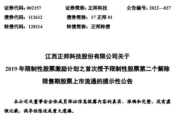 正邦科技3月9日晚間發(fā)布公告稱,公司限售股份約1694.2萬股將于2022年3月11日解禁并上市流通,占公司總股本比例為0.5385%。
