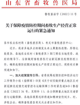 山東畜牧獸醫(yī)局緊急發(fā)文:全力保障畜牧生產(chǎn)運輸車輛順暢通行