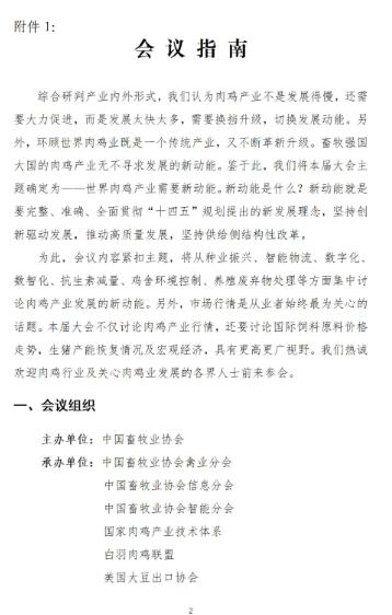 根據(jù)當(dāng)前全國新冠肺炎疫情形勢和成都市人民政府關(guān)于加強(qiáng)新冠肺炎疫情的防控工作部署要求,經(jīng)大會組委會研究決定,原定于2022年5月15-17日(15日報(bào)到)在成都市渝江飯店召開的第七屆(2022)全球肉雞產(chǎn)業(yè)研討會延期至2022年8月7-9月(7日報(bào)到),會議地點(diǎn)及內(nèi)容不變,詳見附件。我們將繼續(xù)開展會議的招商工作,請有意向的企業(yè)及時(shí)與我們聯(lián)系。