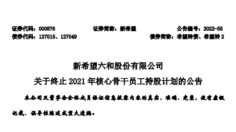 重新制定并推出新的員工持股計劃方案(新希望:擬推2022年員工持股計劃,總?cè)藬?shù)不超過2326人,購買價為7.98元/股)。 由于公司本次員工持股計劃尚未完成回購股份非交易過戶,因此本次持股計劃不產(chǎn)生相關(guān)股份支付費用,終止本次持股計劃不會對公司的財務(wù)狀況和經(jīng)營成果產(chǎn)生影響,不存在明顯損害公司及全體股東利益的情形,不會對公司日常經(jīng)營和未來發(fā)展產(chǎn)生重大不利影響。公司計劃在未來 12 個月內(nèi)推出新的員工持股計劃,公司將嚴(yán)格按照有關(guān)規(guī)定履行信息披露義務(wù)。