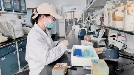 中國農(nóng)業(yè)大學(xué)譙仕彥教授團隊研究低蛋白質(zhì)低豆粕日糧技術(shù)進行樣品檢測。資料圖