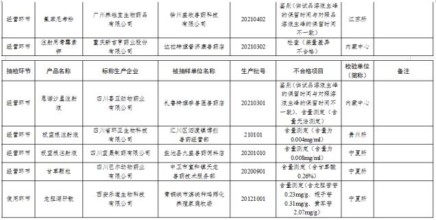 (二)非生物制品類獸藥產(chǎn)品省級監(jiān)督抽檢不合格情況