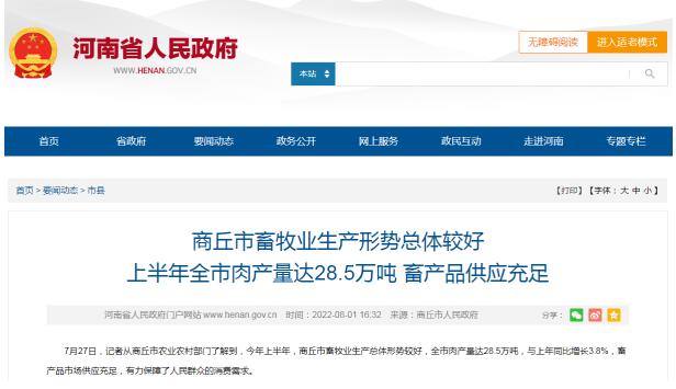 據分析,下半年,全市生豬生產會持續(xù)保持增長,生豬價格仍會在高位運行,生豬養(yǎng)殖效益持續(xù)看好。目前,牧原集團在我市已建成大型養(yǎng)豬場46個,產能達260萬頭,發(fā)展后勁十足。牛羊生產會保持穩(wěn)定增長,牛羊價格會明顯恢復,養(yǎng)殖效益會明顯好轉。肉禽生產由于周期短、見效快,上半年受新冠疫情影響較大,預計隨著新冠疫情影響減弱,下半年會得到有效恢復。