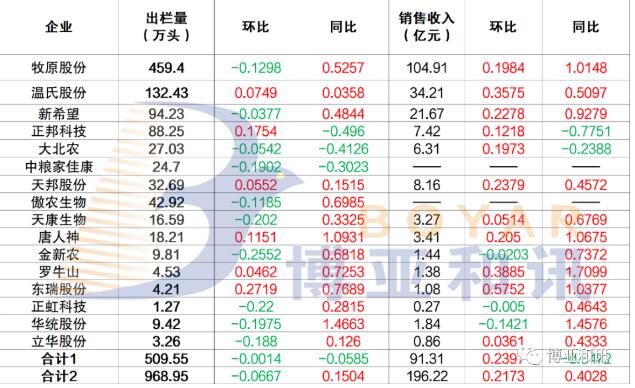2、上市企業(yè)生豬銷售收入環(huán)比多增加
