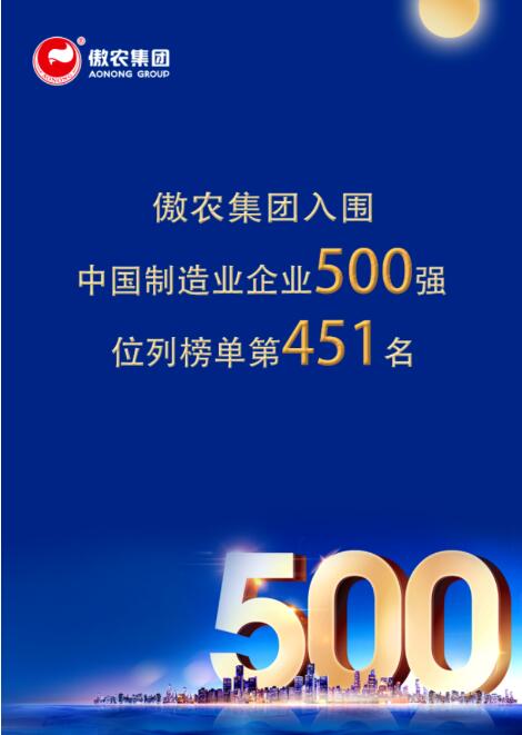 日前,中國企業(yè)聯(lián)合會(huì)、中國企業(yè)家協(xié)會(huì)(以下簡稱:中國企聯(lián))在京舉辦新聞發(fā)布會(huì),向社會(huì)發(fā)布了“2022中國企業(yè)500強(qiáng)”榜單,會(huì)上同時(shí)發(fā)布了“2022中國制造業(yè)企業(yè)500強(qiáng)”等榜單。傲農(nóng)集團(tuán)榜上有名,躋身“2022中國制造業(yè)企業(yè)500強(qiáng)”榜單第451名。