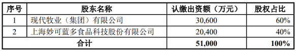 根據(jù)該《議案》,妙可藍多與現(xiàn)代牧業(yè)將共同投資設(shè)立“好多牛牧業(yè)科技發(fā)展有限公司”(最終以市場監(jiān)督管理部門核準信息為準,下同),注冊資本5.10億元人民幣,各方均以現(xiàn)金出資。其中,妙可藍多認繳出資2.04億元,持有合資公司40%股權(quán);現(xiàn)代牧業(yè)認繳出資3.06億元,持有合資公司60%股權(quán)。