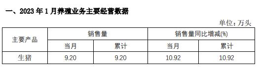 云南神農(nóng)集團(tuán)2月7日發(fā)布2023年1月養(yǎng)殖業(yè)務(wù)主要經(jīng)營(yíng)數(shù)據(jù)公告: