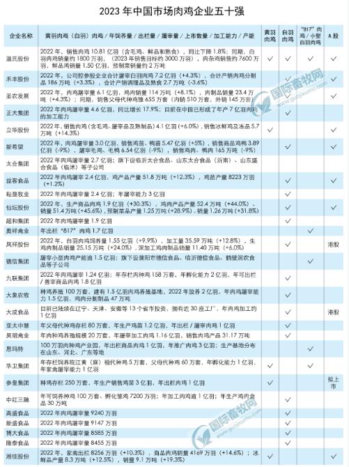 2023年中國市場肉雞企業(yè)50強(qiáng)