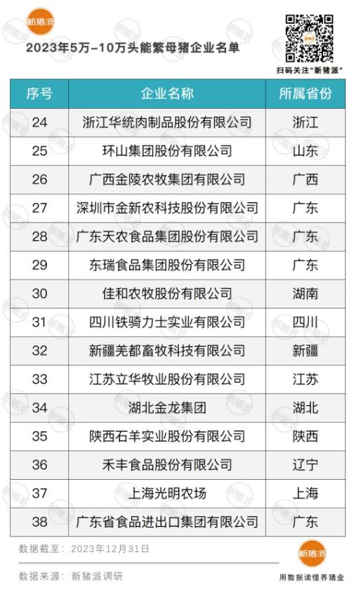 根據(jù)新豬派統(tǒng)計,截至2023年底,我國TOP20豬企能繁母豬共計921萬頭,占全國總量的22%。能繁母豬超過10萬頭的企業(yè)維持在23家。