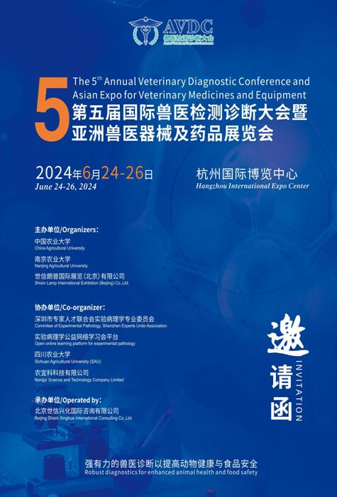第五屆國際獸醫(yī)檢測診斷大會定于2024年6月24-26日在杭州國際博覽中心舉行,大會將繼續(xù)秉承“強有力的獸醫(yī)診斷,以提高動物健康與食品安全”的辦會宗旨,重點邀請亞、美、歐國家權(quán)威獸醫(yī)檢測專家主講,為參會代表帶來全球獸醫(yī)檢測行業(yè)的最新進(jìn)展,分享診斷病理學(xué)、分子診斷、病毒學(xué)/血清學(xué)、獸醫(yī)檢測的驗證、現(xiàn)場快速檢測、實驗室安全、微生物學(xué)、實驗室質(zhì)量管理等領(lǐng)域的國際最新資訊和研究成果。本屆獸醫(yī)檢測大會參會代表預(yù)計超過3500人。