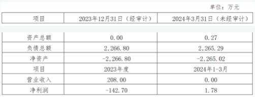 公司委托湖南圣盛達聯(lián)合會計師事務所(普通合伙)審計,并出具了審計報告,截至2023年11月30日,正虹海原資產總額4085.38萬元,凈資產3127.56萬元,負債總額957.83萬元,2023年1月至11月,正虹海原實現(xiàn)營業(yè)收入-20.80萬元,凈利潤-236.37萬元。