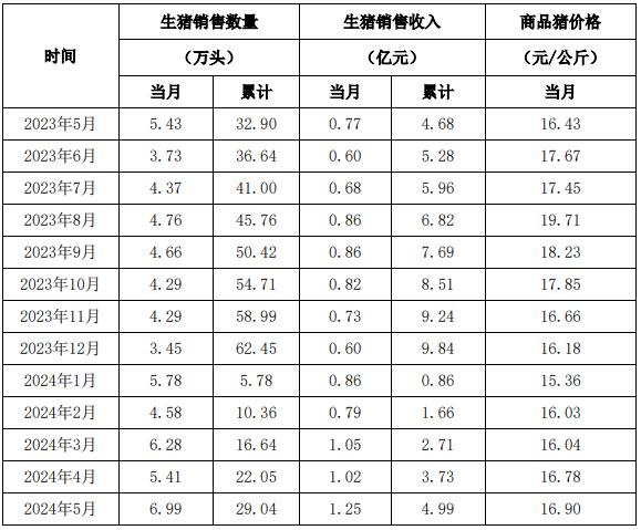 東瑞股份:5月銷售生豬6.99萬頭,銷售收入1.25億元