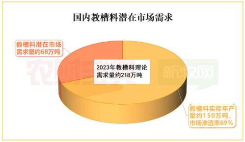按照2023年全國出欄生豬7.27億頭估算,教槽料的年需求量可達(dá)218萬噸。而據(jù)行業(yè)人士估計,當(dāng)前全國豬教槽料年產(chǎn)量約150萬噸,約占全國豬料總產(chǎn)量的1%,相較理論需求有近70萬噸缺口,市場滲透率約69%。