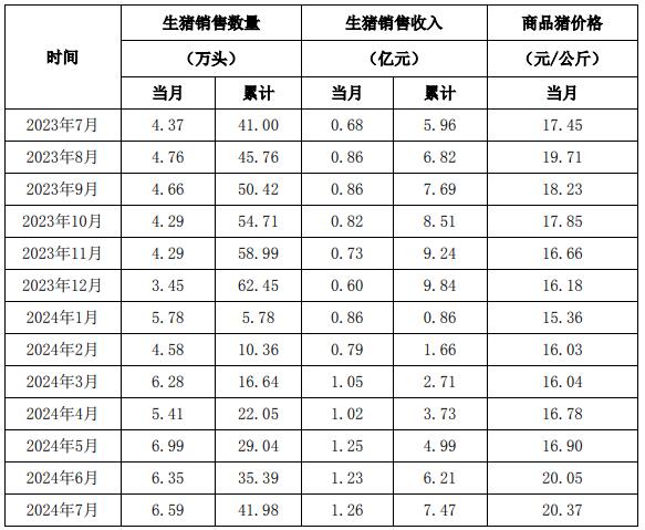 東瑞股份:2024年7月份共銷售生豬6.59萬頭