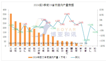 20、四川:2024年前三季度豬肉產(chǎn)量356.8萬噸,同比下降1.0%
