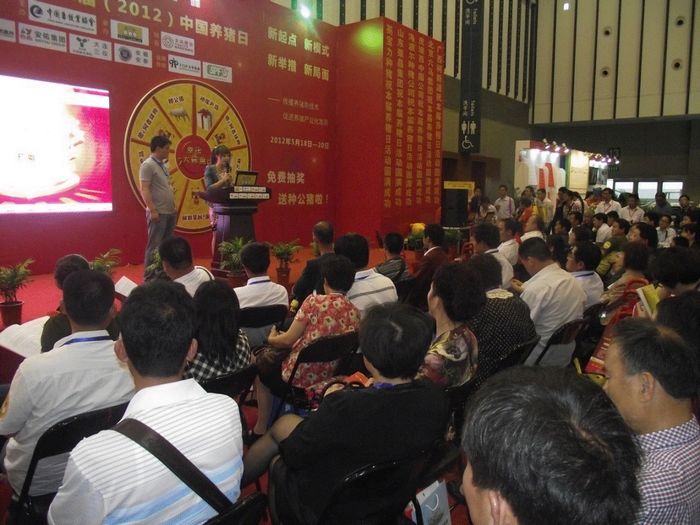 同期,5月18日,由中國畜牧業(yè)協(xié)會主辦,豬e網(wǎng)承辦的第二屆(2012)中國養(yǎng)豬日活動在B館豬業(yè)展館拉開帷幕,豬e網(wǎng)的網(wǎng)友、現(xiàn)場觀眾濟濟一堂,踴躍的參與了各養(yǎng)豬日活動,現(xiàn)場氣氛火爆異常,讓B館西側(cè)成為本屆展覽會B館人氣最旺、最熱鬧、最吸引人關注的所在。