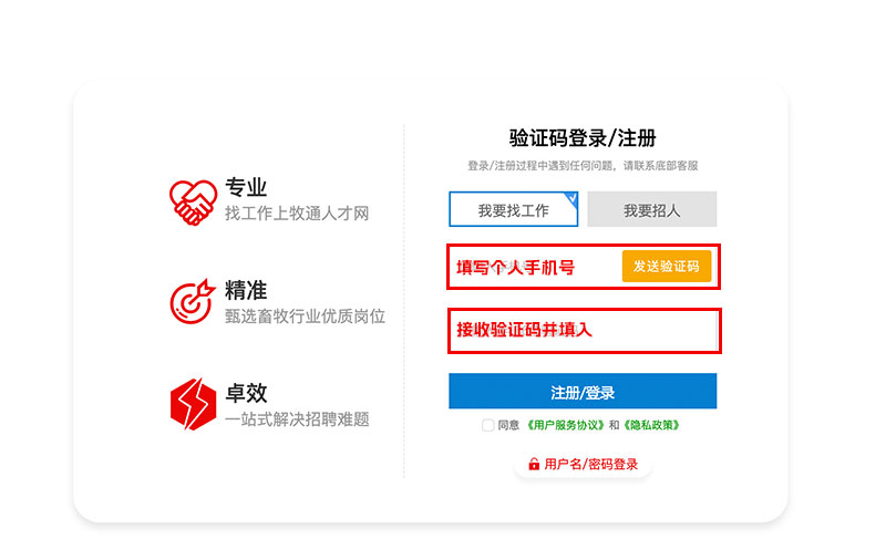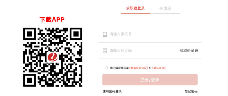 1、掃描二維碼下載或到手機(jī)應(yīng)用市場(chǎng)下載“牧通人才網(wǎng)APP”,打開選擇“求職者登錄”,注冊(cè)/登錄時(shí)請(qǐng)?zhí)顚懻鎸?shí)有效的電話號(hào)碼,便于您日后登陸和接收企業(yè)信息。