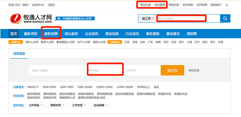 3、簡(jiǎn)歷完善后,便可查找意向工作崗位。通過(guò)網(wǎng)站上方的“最新招聘”、“職位分類”,以及“職位搜索”功能,可以查看相應(yīng)的企業(yè)招聘信息,便于您找到中意的工作。